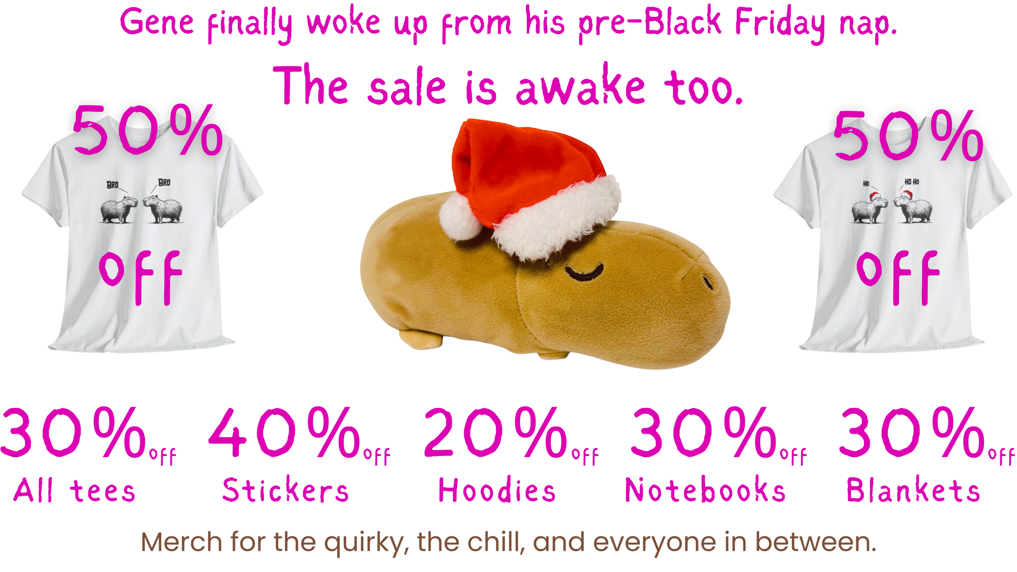 Snuggle up with Gene’s favorite cozy capybara blankets — soft, warm, and endlessly chill. Whether you’re binge-watching, napping, or hiding from responsibilities, these plush designs bring the calm wherever you curl up.
